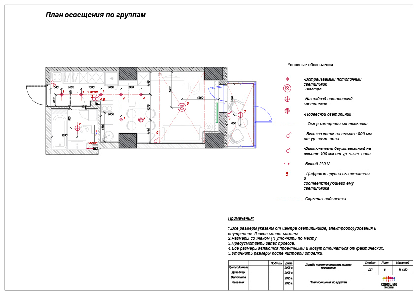 В состав электрики входят несколько чертежей, отражающих люстры, светильники, бра, розетки и выключали со всеми отступами и высотами.