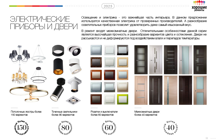 | Материалы: Люстры, бра (из расчета 1 единица на одно помещение, стоимость до 3000 руб. за единицу) |