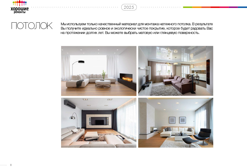 | Материалы: Натяжной потолок (глянец или матовый) |