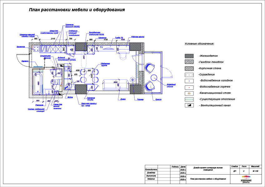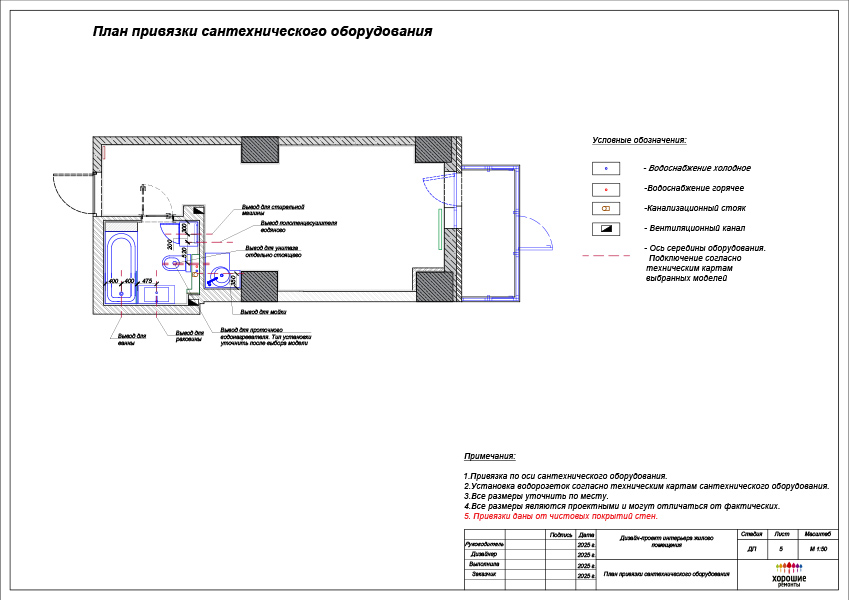 Вам предложат лучшее решение по расстановке стиральной машины, ванной, умывальника. Также этот план необходим для черновой разводки сантехники.